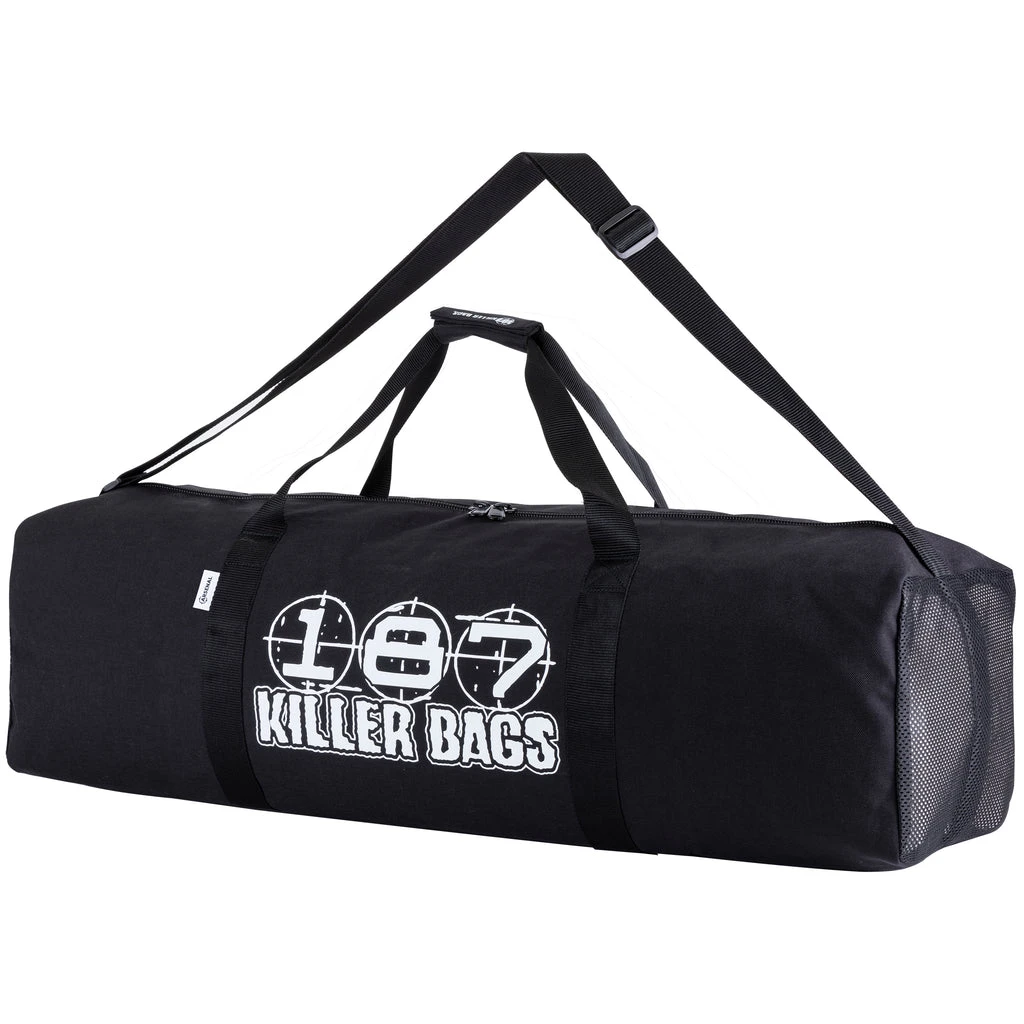 Haul your full arsenal of skateboards and gear with this oversized duffel bag. Purpose-built to withstand the all the abuse of daily sessions and long-distance travel. Two mesh ventilation panels allow your stuff to air out. Includes rugged shoulder strap and carry handles. Strap your skateboard to the bottom to wheel it around when it’s really loaded up.