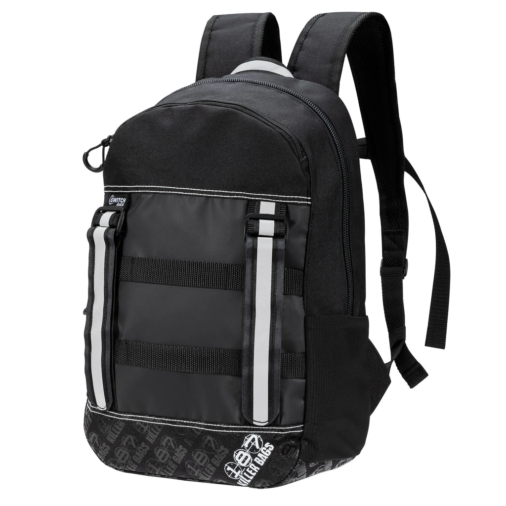 The multi-function backpack to carry your board on your bike! Featuring vertical straps to easily carry a skateboard while riding a bike and sit comfortably without worrying about clipping your tire; as well as a Switch Back pull-tab to transform a traditionally strapped backpack into a convenient sling back for a more vertical orientation in crowded spaces.