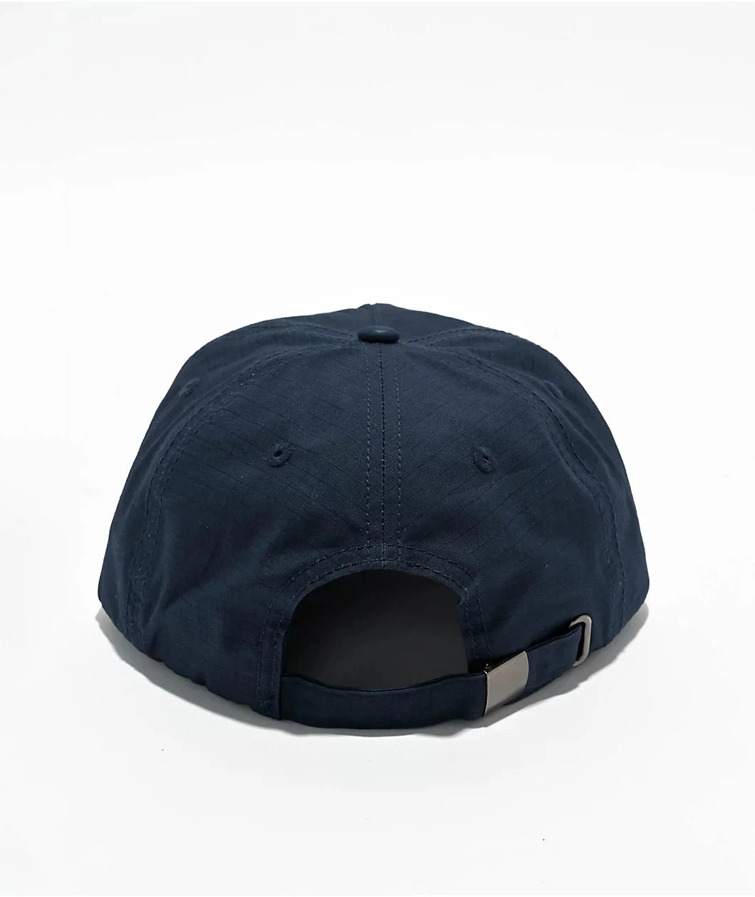 Alien Workshop introduces the AWOL Sea strapback hat in a navy colorway. This sleek 5-panel hat features a classic silhouette with a royal blue Illuminati Alien Workshop logo on the front, complemented by a corduroy brim and an embroidered wheat design on the bill with white rope accents. The hat offers an adjustable snapback sizing piece, ensuring a perfect fit for anyone.