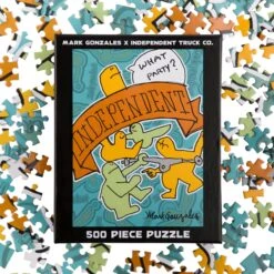 The Independent Gonz Puzzle is 500 pieces, 14″ x 19″ and features artwork by legendary Independent rider Mark Gonzales.
