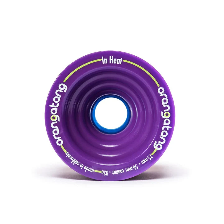With a diameter of 75mm, the Orangatang In Heat is a classically proportioned and well balanced wheel for hard carving, pumping, and downhill racing. The offset bearing seat and sharp edges ensure high traction, while the thick lips and suggestively rippled walls provide progressive energy return in and out of turns. The In Heat is poured in our proprietary Happy Thane formula for high roll speed, excellent traction, and smooth, predictable drifts.