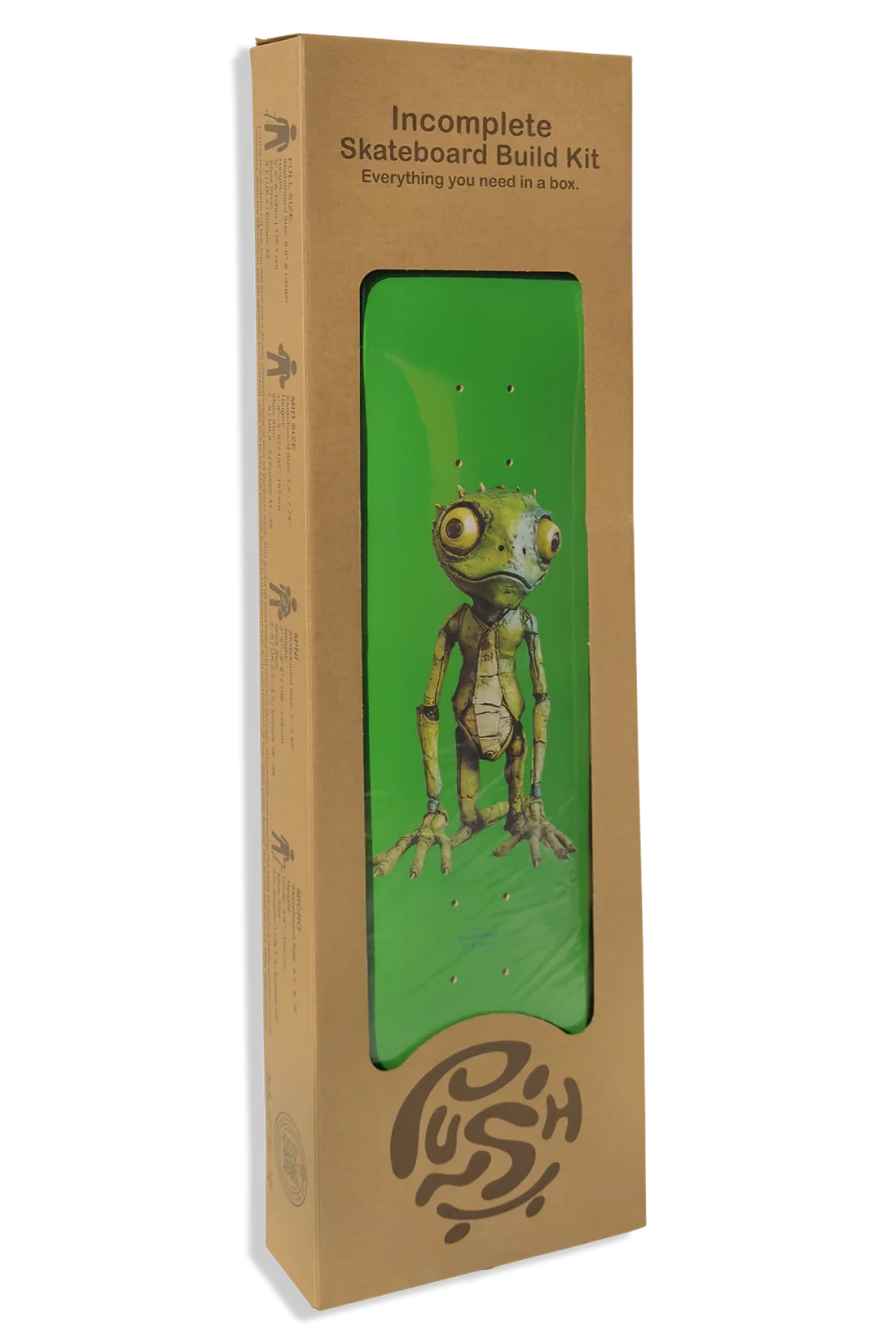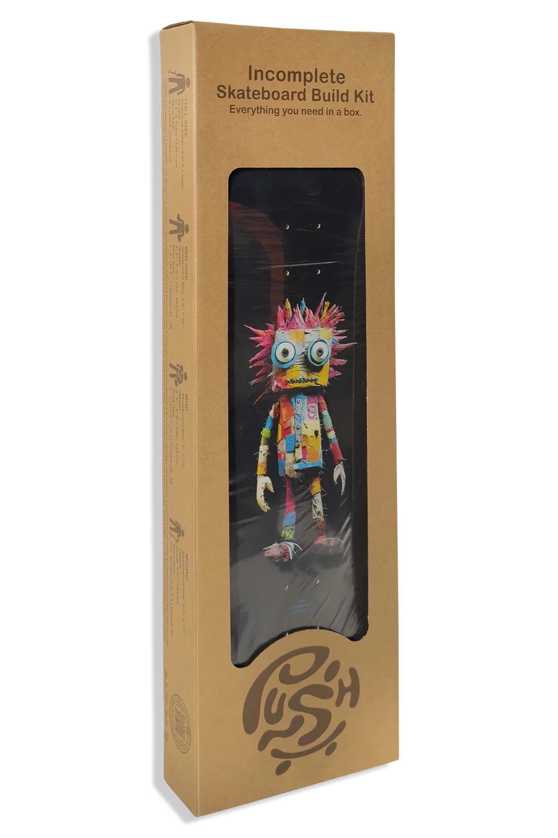 Pre packaged skateboard in a gift box. Comes with all components and a skate tool for easy assembly.