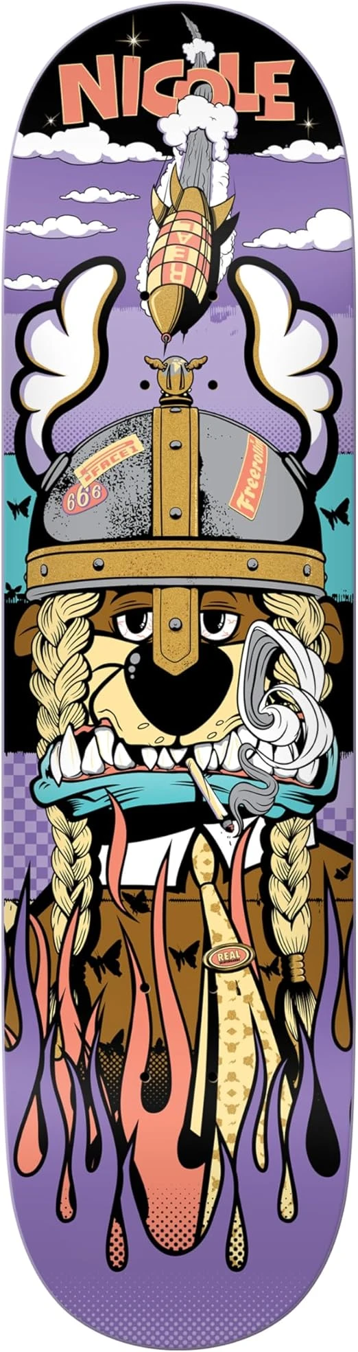 Dean Stockton, also known as D Face is a london-based skateboader and street artist. He collabed with Real Skateboards to capture each riders personality and showcase his distinctive artistic style. Real boards are made with premium 7-Ply North American maple. This deck features the Full SE shape.