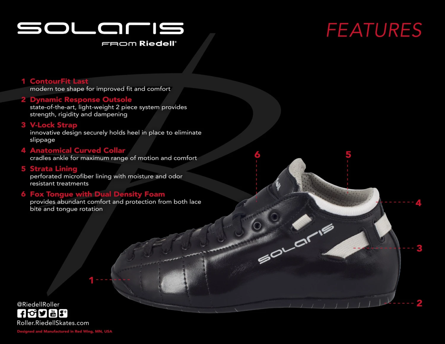 The Solaris is an all-new quad skating boot from Riedell. It is the result of more than 3 years of research and development, and it introduces cutting-edge technology and design that will re-define performance and comfort standards for quad skating boots.