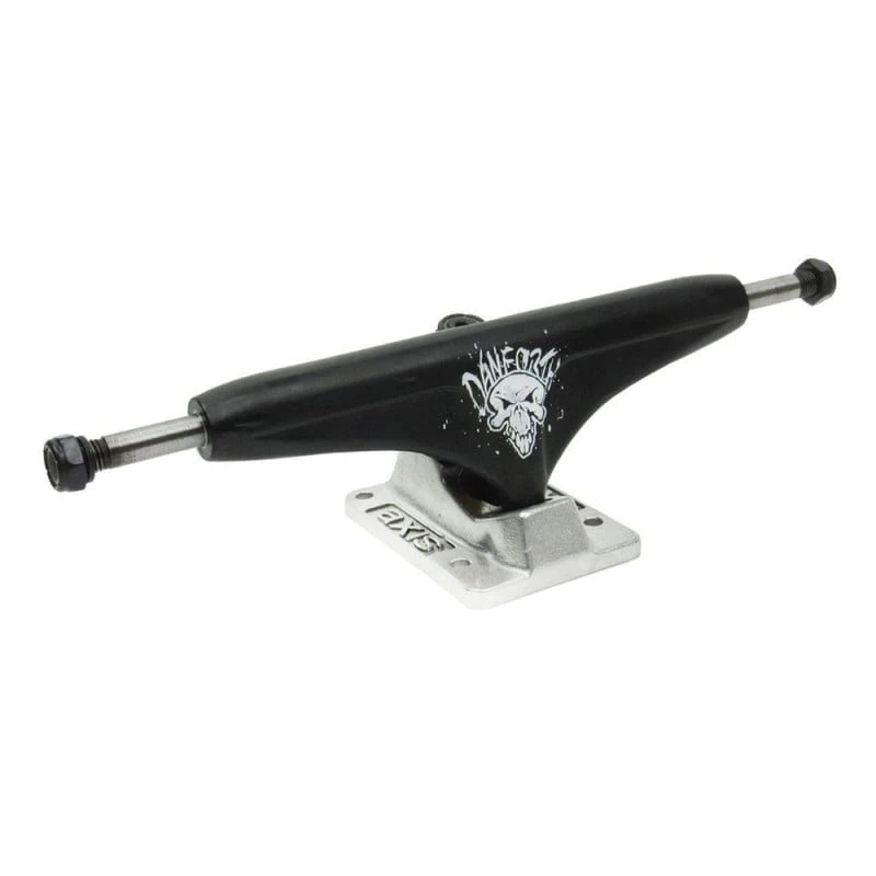 The Axis is the newest addition to the Tracker line. Keeping the classic look, Tracker steepened the pivot angle creating a quicker turning radius, dropped the hanger height and re-worked the yoke for better kingpin clearance on grinds. The Axis is a perfect for most all applications; street, vert, pool, park or cruiser; this truck will not disappoint!
