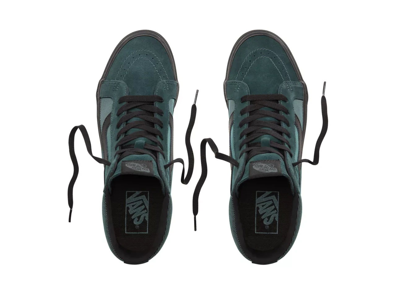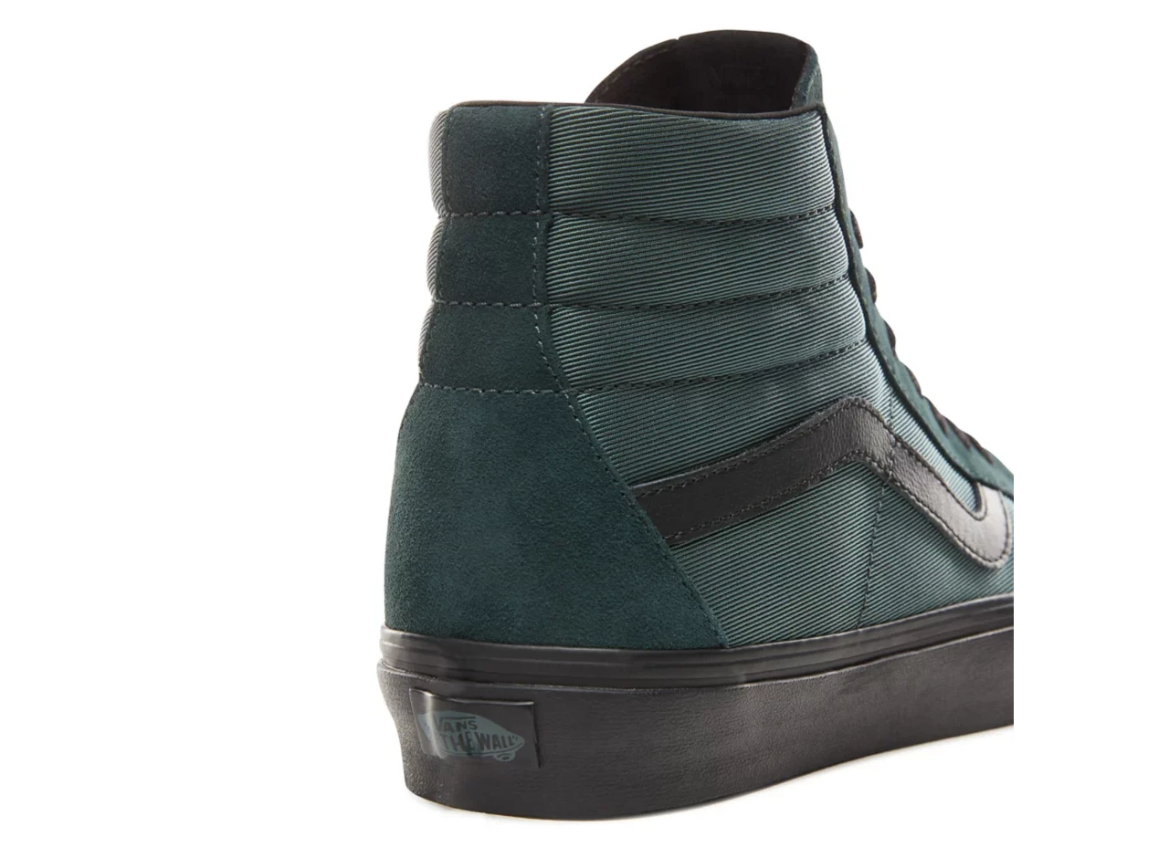 The Metallic Twill Sk8-Hi Reissue, the legendary Vans high top reissued with a vintage sensibility, features sturdy textile and suede uppers, re-enforced toecaps to withstand repeated wear, padded collars for support and flexibility, and signature rubber waffle outsoles.