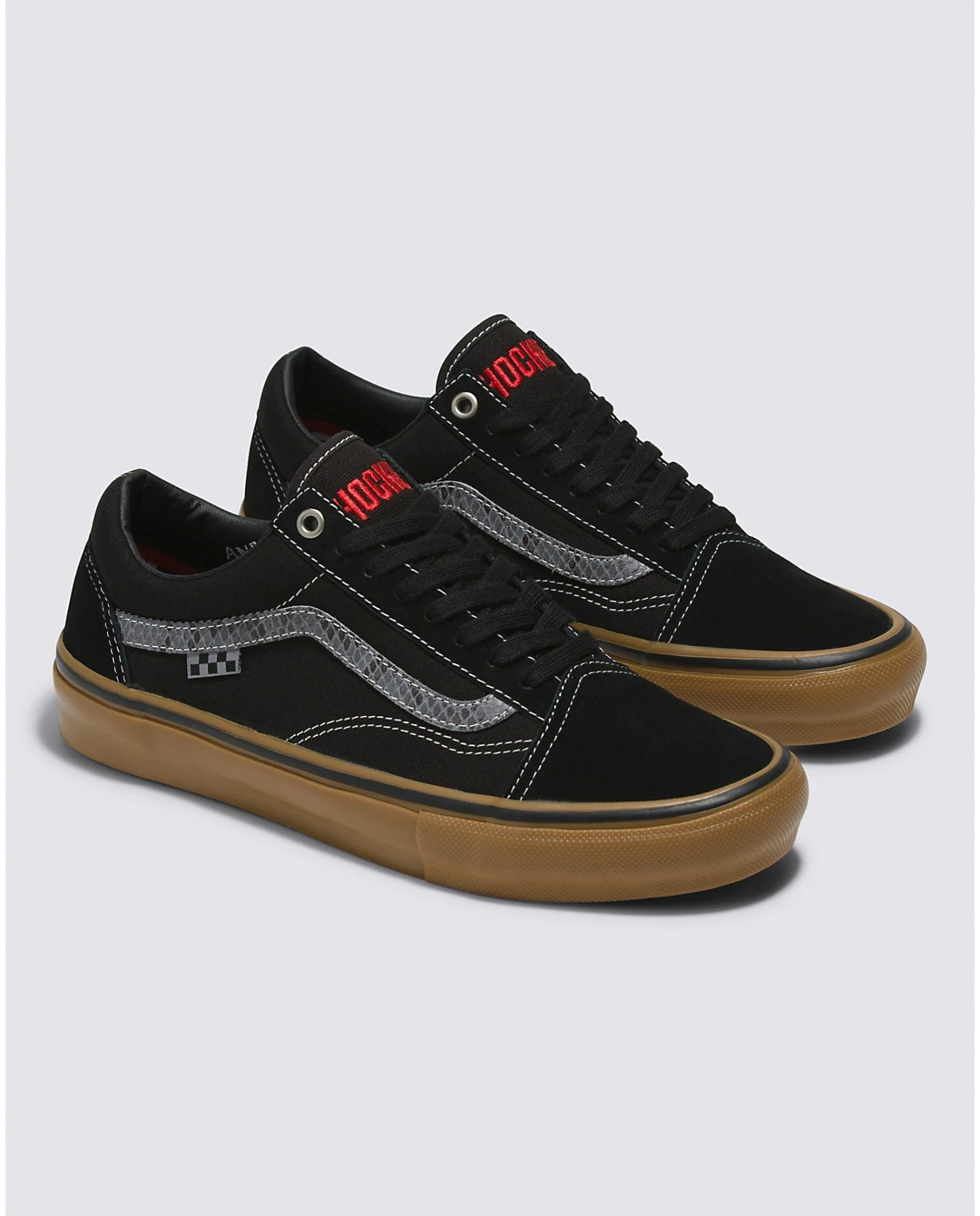 Since first working together in 2018, Vans Skateboarding and Hockey have established a singular aesthetic of their own. This season, a fresh iteration of the Skate Old Skool continues this partnership. Boasting a black and gum color scheme with snakeskin embellishments and bold red block letter embroidery, the Vans x Hockey Skate Old Skool meets the no-holds-barred skate style of the Hockey team while delivering a distinct look packed full of Vans Skateboarding’s very best tech.