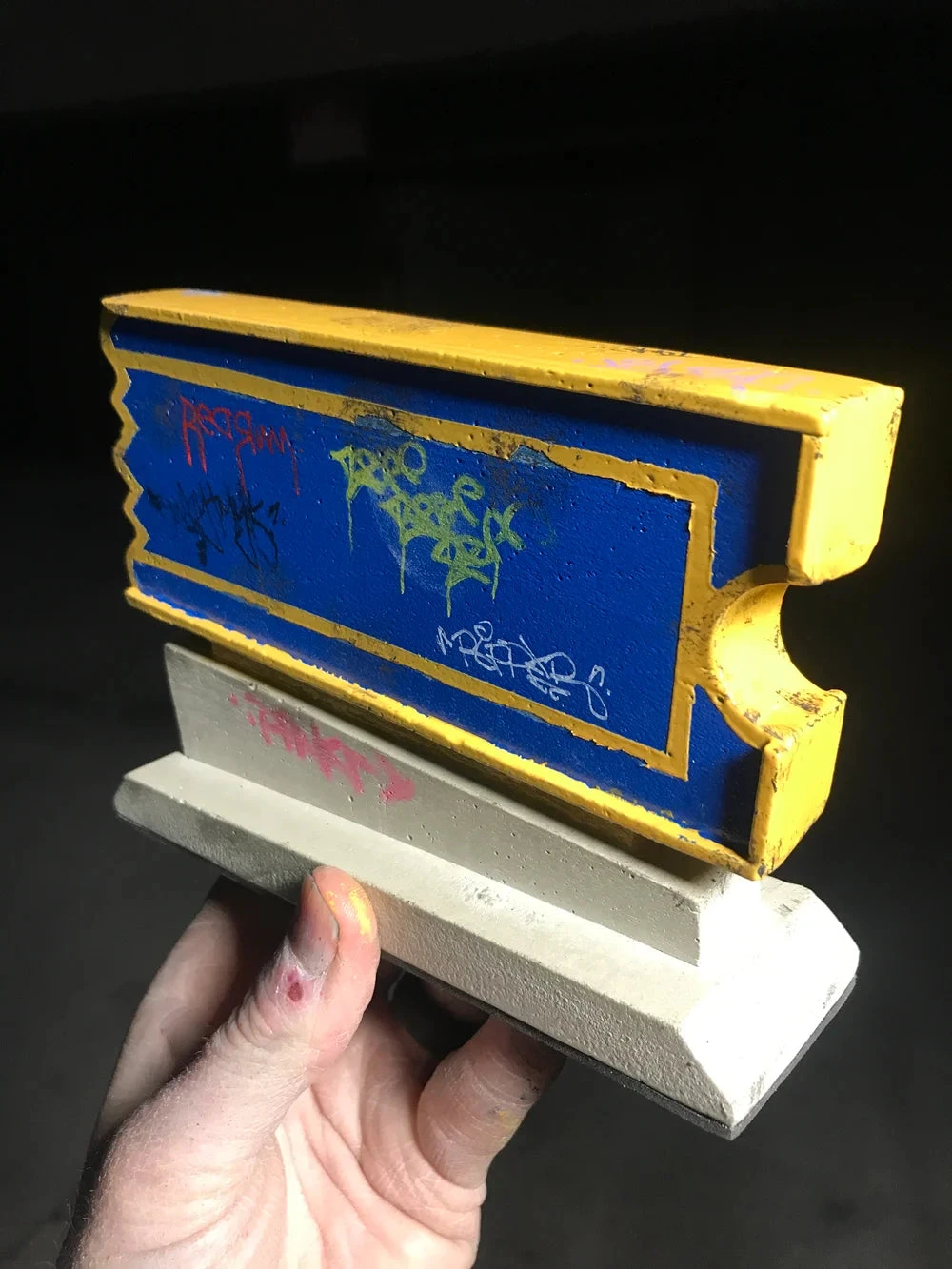 Replica Blockbuster sign featured in Birdhouse “The End” classic skate video. Concrete 6 in x 4 1/2 in. Non slip bottom