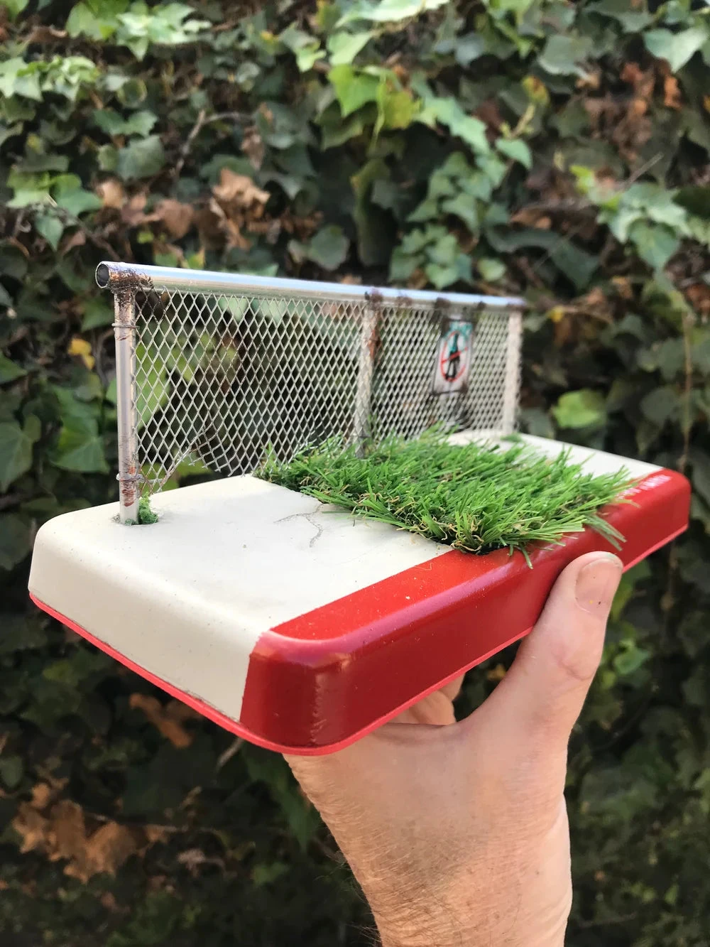 9 inch sidewalk with 2 1/2 inch fence and 3 inch grass gap. Includes hand painted No Fingerboarding sign